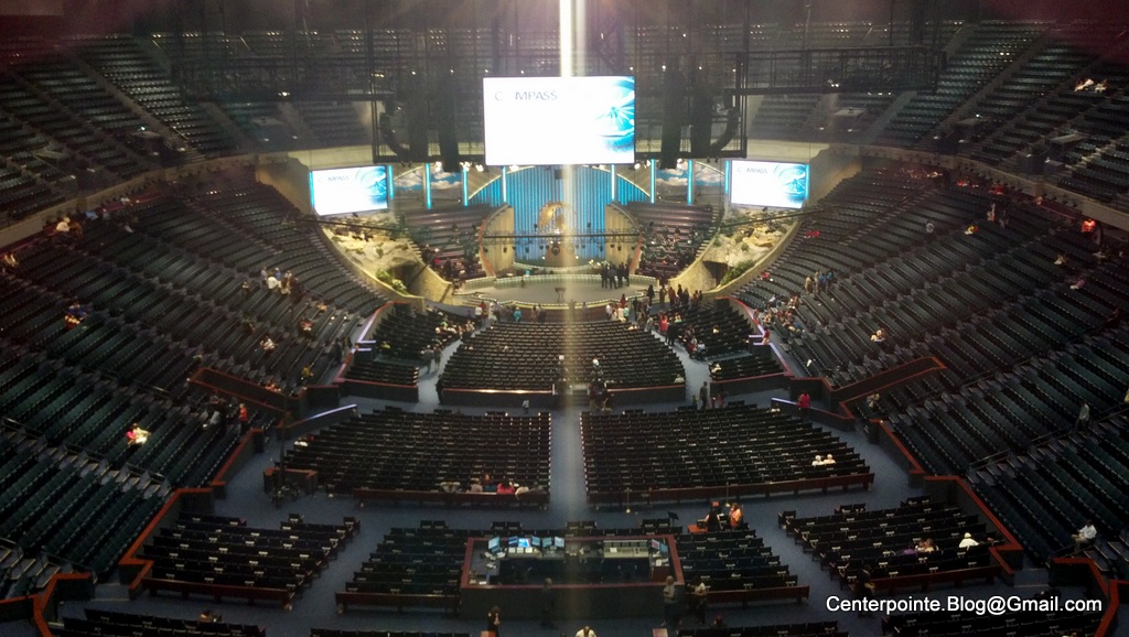 I hadn't been inside The Summit since Michael Jordan's last game against the Rockets, the highlights of which are embedded here in case you'd like to review that event and the facility in which it transpired - the dear-to-our-hearts old sports facility that subsequently underwent an astonishing transformation into Lakewood Church: